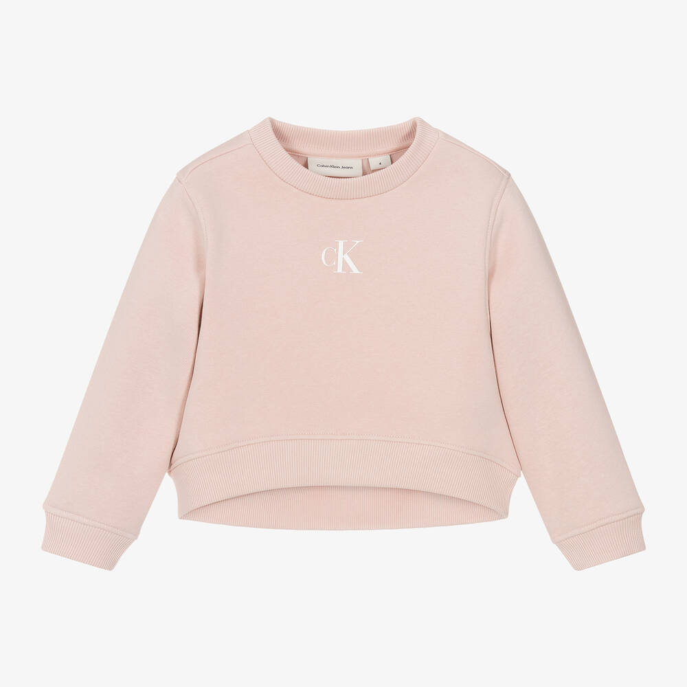 Светло-розовый свитшот для девочек от Calvin Klein из хлопкового трикотажа средней плотности с мягким флисовым внутренним слоем. Этот повседневный топ с белой монограммой Calvin Klein имеет круглый вырез и удобные ребристые края. Задний край немного длиннее для создания свободного силуэта.