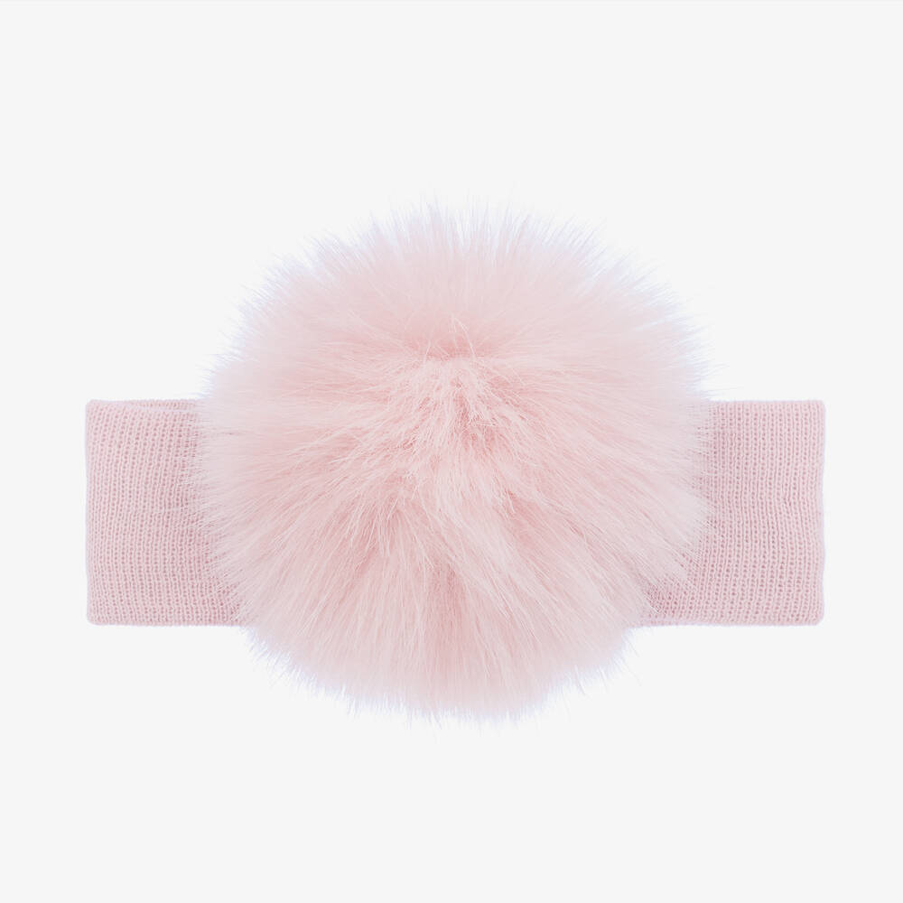 Baby Girls Pink Wool Knit Pom-Pom Headband