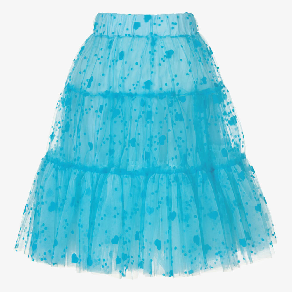 Голубая юбка из тюля с сердечками для девочек