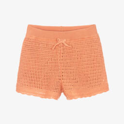 Burnt orange organic cotton shorts for girls by luxury brand Chloé. The side panels are trimmed with gorgeous guipure lace and detailed with a Chloé signature logo embroidered in tonal orange. Ensuring a comfortable fit, the drawstring waist features shiny gold hardware, engraved with the French designer's name. These comfortable shorts are made in soft and stretchy sweatshirt jersey, with useful side pockets.