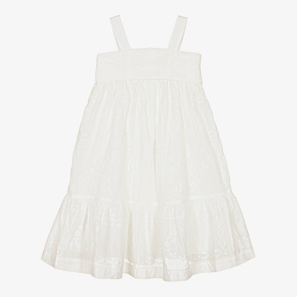 Girls Ivory Embroidered Cotton Dress