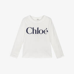 Белый органический хлопковый Мини-ми лонгслив для девочек от роскошного французского бренда Chloé с ярким логотипом на груди в синем цвете. Идеально подходит для создания брендового стиля в повседневные, расслабленные дни, изготовлен из мягкого, комфортного трикотажа.