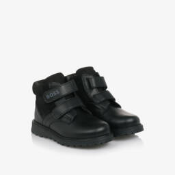 Stylish black ankle boots for teen girls by luxury French brand Chloé. Made in soft leather, they have cosy navy blue knitted inserts with ribbed ankle cuffs. For a subtle designer touch, there is a black and white logo tape tab on the back of the heel to help with pulling them on. Lined in soft leather, these cool boots have chunky non-slip rubber outsoles for good grip.
