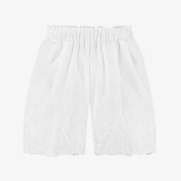 Stylish ivory wide-leg jeans for teen girls by luxury brand Chloé, made in soft organic cotton denim with very fine speckles. They have a Chloé logo on the waistband and faux rivet detailing on the front pockets, all embroidered in beige to match the stitching. In a classic five-pocket style, they fasten with a front zip and branded golden logo popper.