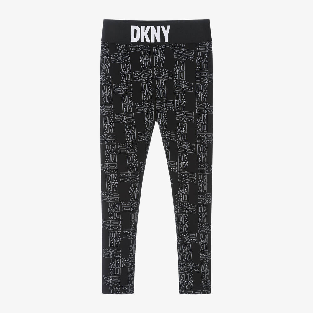 Comfortable to wear, these black full-length leggings for girls by DKNY are made from soft cotton jersey. Printed with a white branded pattern, the wide elasticated waistband has bold rubberised logo detailing for an instantly recognisable look.