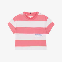 Повседневная белая футболка для девочек от DKNY с эффектным логотипом и изображением горизонта Нью-Йорка в розовых тонах. Эта свободная футболка с заниженными плечами и круглым вырезом выполнена из мягкого хлопкового трикотажа.