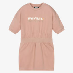 Black two-in-one dress for teen girls by DKNY. Designed with a bold white logo graphic across the front, the T-shirt-style dress is made in super-soft Milano jersey for a sleek, sophisticated drape. She can wear this dress alone or with the black mesh overlay, a statement look thanks to its monochrome logo tape on the waist and exaggerated open, cut-out design on the back. The black jersey dress finishes above the knee and the mesh dress falls below the knee for a cool effect.