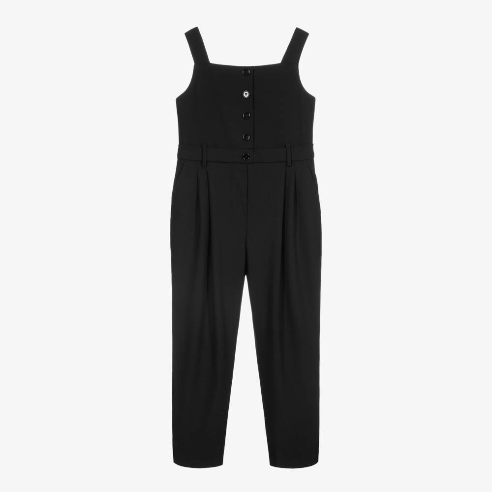 Directly inspired by the Womenswear collection, this Mini-me wool gabardine jumpsuit by luxury brand, Dolce & Gabbana, is elegant and sophisticated. There are horn buttons to fasten on the bodice, with a fixed belt and pleated trousers with side pockets.