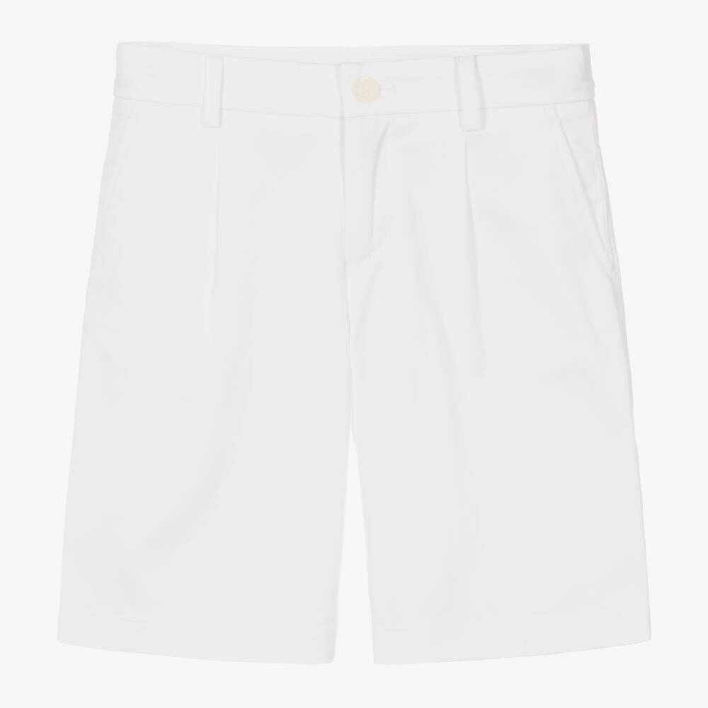 Белые хлопковые шорты-бермуды для мальчиков