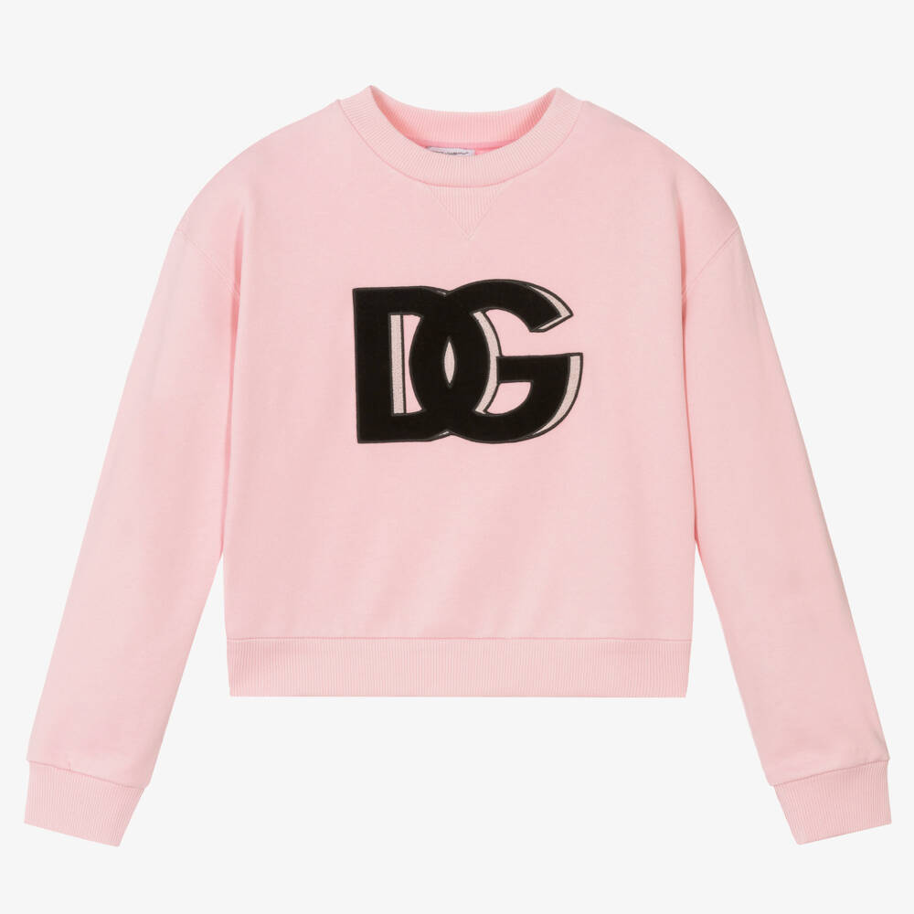 Perfectly pink sweatshirt for teen girls by Dolce & Gabbana. The brand's distinctive crossover DG logo appliqué is embroidered on the front with a 3D effect, for a high-impact designer statement. Styled in mid-weight cotton sweatshirt jersey, it has a classic crew neckline and ribbed trims.