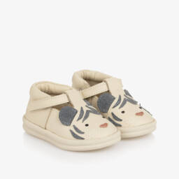 Кремовые кожаные сандалии на первый шаг для девочек