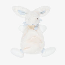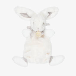 A white and pink unicorn comforter for baby girls by Doudou et Compagnie, made in super-soft velour with an embroidered rainbow design. Shimmering in the light, it has gold glitter trims to help stimulate baby's vision. The knotted corners are ideal for tiny hands to grip and explore.
