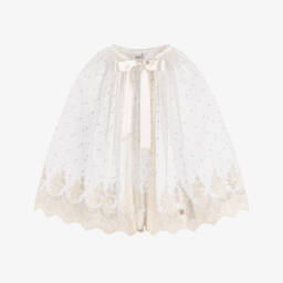 Стильный фиолетовый кейп для девочек от EIRENE идеально подходит для особых случаев. Слегка текстурированная с мерцающим узором из пайеток, имеет стоячий воротник из шелковистого атласа и подходящую ленту спереди, завязывающуюся в бант. Кейп на подкладке из хлопкового сатина для комфорта.