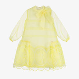 Designed by couture brand Elie Saab, this pretty pink special occasion dress for girls has elegant scalloped trims. The bodice has an intricate, sheer panel across the front and back, made using embroidered tulle with a beautiful floral design. The accentuated waist is decorated with the brand's signature gold charm, adding a touch of shine to the look. Lined in soft viscose, it fastens with a concealed zip on the back for a seamless finish.