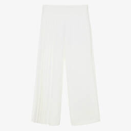 Girls Ivory Satin Wide Leg Trousers