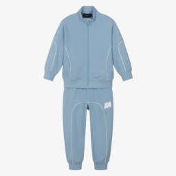 Stylish and sporty brown tracksuit for boys by Emporio Armani, made in luxe Milano jersey. The track top has a tonal zip fastening on the front, and a bronze Eagle logo appliqué on the chest. It also has useful side pockets. Athleisure-inspired ivory stripes add a cool twist to the ribbed hem. It pairs with matching cuffed joggers, creating an effortlessly comfortable and casual look.