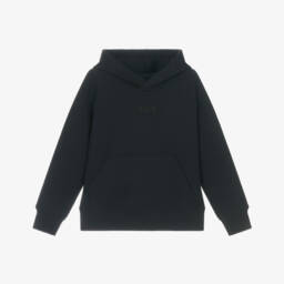 A long-sleeved hoodie for younger boys by Italian designer Emporio Armani, in khaki green. Made in a blend with cotton, this soft jersey hoodie has tonal Emporio Armani branding and layered-look sleeves. This hooded sweatshirt has a little pouch pocket on the front and ribbed cuffs.