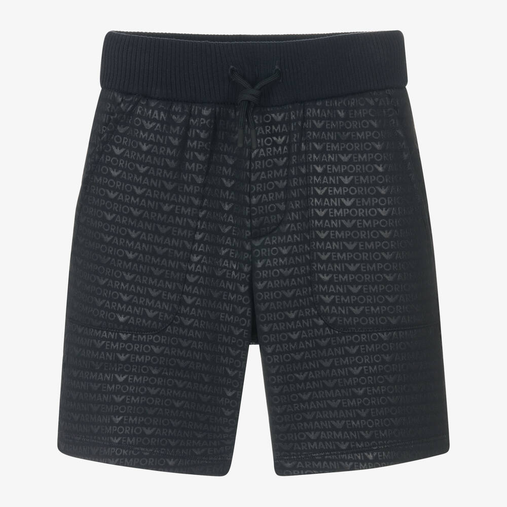 Синие шорты из мягкого хлопкового джерси для мальчиков от легендарного итальянского бренда Emporio Armani из мягкой смеси хлопка. Эти стильные шорты имеют повторяющийся логотип с легким блеском. Удобный ребристый пояс с декоративным шнурком и полезные накладные карманы спереди.