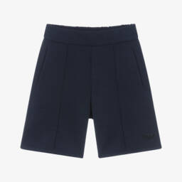 Элегантные синие шорты для мальчиков от Emporio Armani из мягкого трикотажа для комфорта. Спереди они украшены изящными складками и имеют тональный жаккардовый узор с легендарным логотипом Eagle для утонченного брендового образа. Изготовлены из мягкой смеси хлопка и вискозы, с удобным эластичным поясом и тональным логотипом Eagle на подоле для фирменного завершения.
