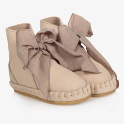These soft, lightweight and flexible black leather first-walker shoes from En Fant, are perfect for little ones finding their feet. They are fully lined in leather, with suede leather outer soles and rubber grips, and are secured with velcro fastening straps at the sides, allowing them to be pulled wide open for easy access.