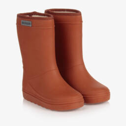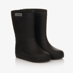 Dark blue thermal rain boots for boys and girls by Danish brand EN FANT, in super flexible eco-friendly rubber. They have a seamless waterproof exterior to keep their feet dry and a reflective logo on the side for high visibility. Warm down to -30*C, they are lined in plush wool with an aluminium membrane for added insulation. They have a good grip on wet and icy surfaces thanks to the non-slip sole.