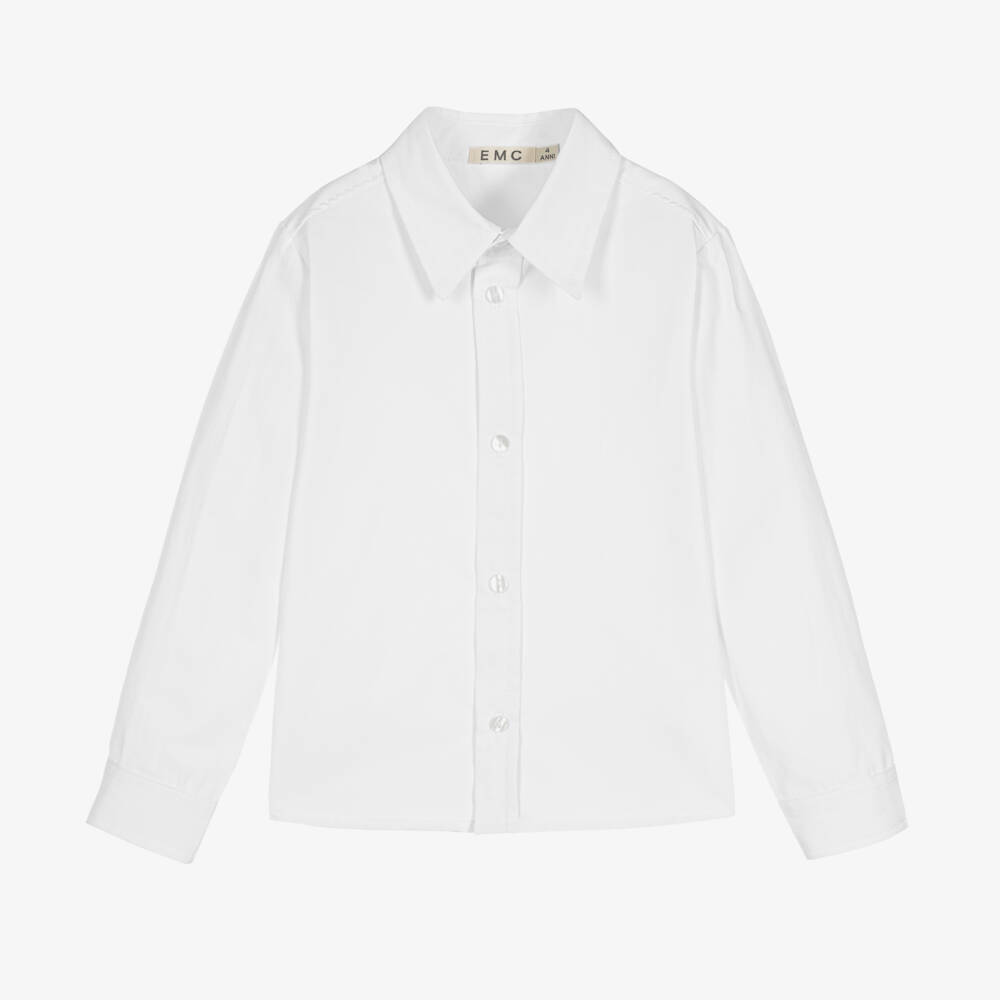 White shirt for little boys by Everything Must Change, made in a softly ribbed cotton blend. This smart shirt has button fastenings on the front.