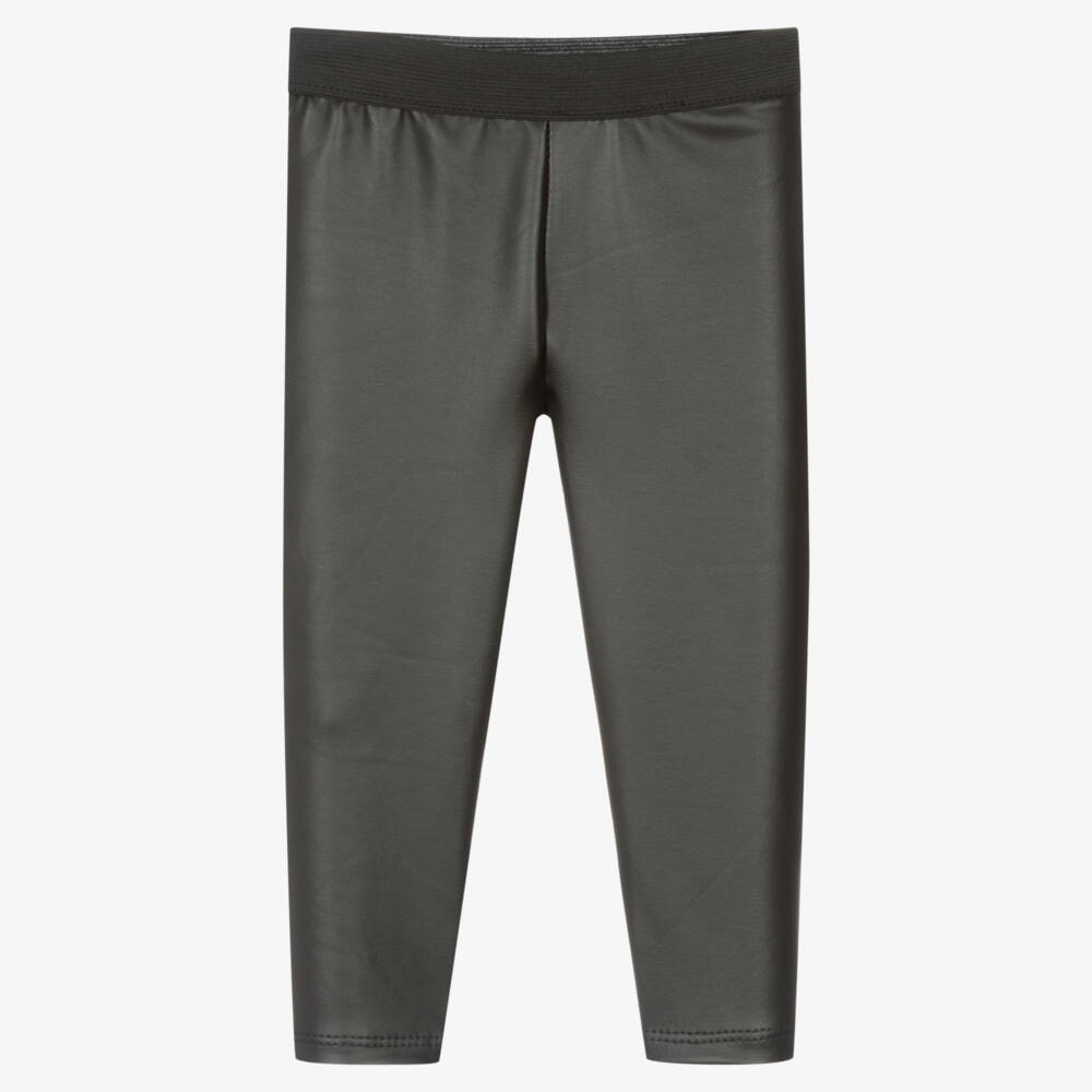 Stylish black leggings for girls by Everything Must Change, made in soft faux leather. Stretchy and lightweight, they are soft and fleecy on the inside and have an elasticated waist for a comfortable fit.