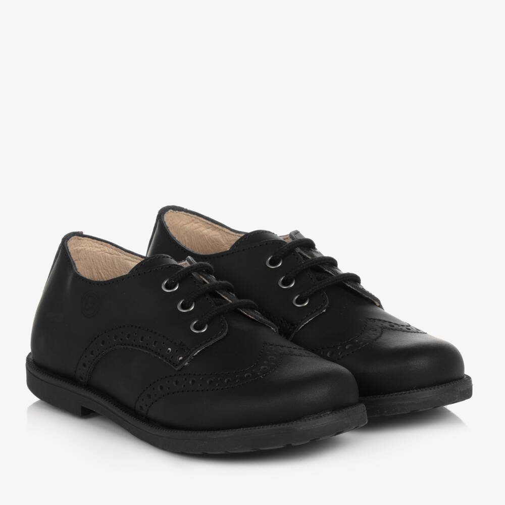 Black leather brogues for little boys by Italian brand Falcotto by Naturino. Ideal for special occasions, these handmade shoes have the classic perforated detailing on the front and the sides and fasten with matching laces. Lined in soft leather, they have non-slip rubber outsoles for good grip.
