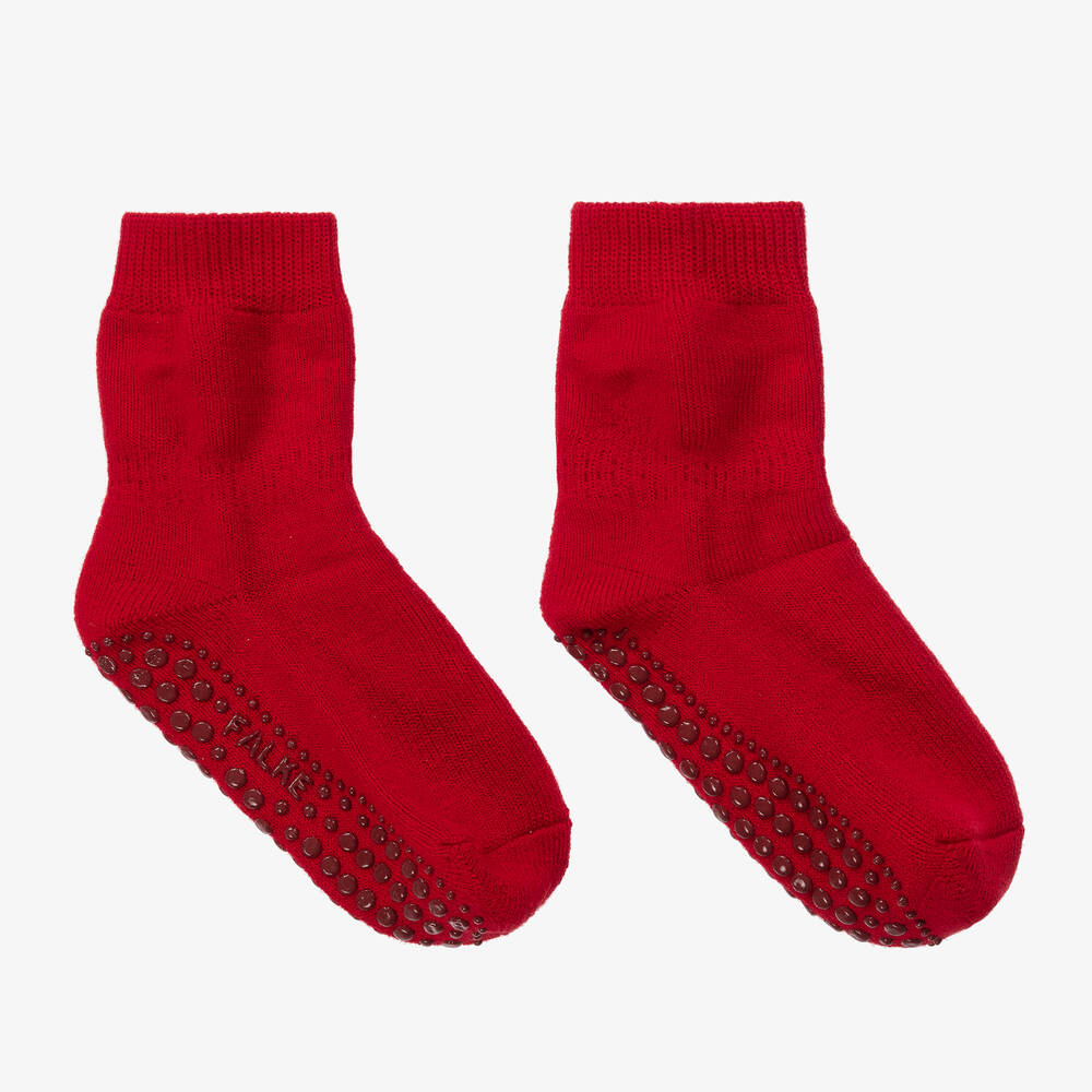Durable and functional, these red slipper socks for boys and girls are from Falke. They are made in a super soft cotton and wool blend, cushioned for comfort with stretchy elasticated trims. These high-quality socks are finished with rubberised pads on the soles, offering anti-slip stability for playful kids.