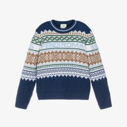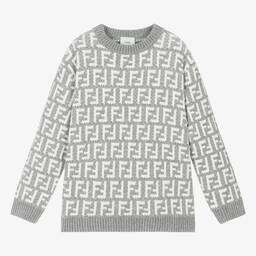 Lilac purple sweater for teen girls, unmistakably by luxury Italian designer Fendi. Patterned with the brand's FF logo in pale pink, it is knitted in soft, mid-weight cotton with neat, ribbed trims.