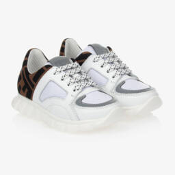 Бело-синие кроссовки для мальчиков от роскошного итальянского бренда Fendi. Верх из мягкой кожи со шнурками и ремешком на липучке. Внутри дышащая сетчатая подкладка и мягкие кожаные стельки. Для утонченного брендового акцента на ремешке красный резиновый логотип и тисненые логотипы Fendi на пятке. Эти стильные кроссовки имеют текстурированную нескользящую резиновую подошву.