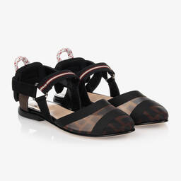Baby girls yellow ballerina sock shoes by luxury brand, Fendi. Made in soft and supple leather, these dainty shoes have an attached stretchy knitted sock in ivory cotton, topped with the designer's brown FF logo. They have a leather inner sole and a smooth leather outer sole with a logo print.