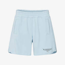 Black Bermuda shorts for boys by luxury French brand Givenchy Kids. Made in comfortable cotton jersey, they have an elaborate white panther print, with front and back pockets. The elasticated waistband has a useful drawstring.