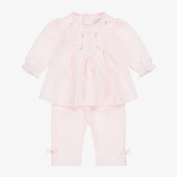 Green organic cotton trouser set for baby boys by Guess, made in comfortable jersey. Patterned in cute and colourful Guess teddy bears, the top has a signature Triangle logo and easy-fastening shoulder poppers. The joggers have an elasticated drawstring waist and a smaller logo on the back pocket.