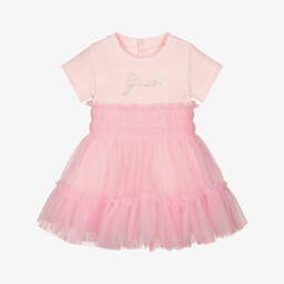 Это бело-голубое платье для малышек от Guess — очаровательный выбор для особых случаев. Мягкий хлопковый верх украшен блестящим серебристым логотипом, а пышная многослойная юбка выполнена из присобранного тюля. Застегивается сзади на кнопки и комплектуется подходящими трусиками для завершения образа.
