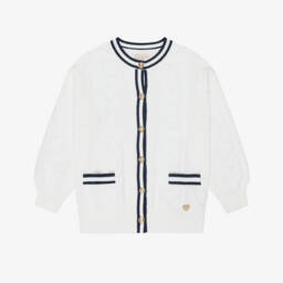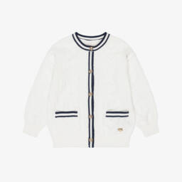 Super cute pink cardigan for baby girls by Guess, knitted in a soft viscose blend. Casual and ideal for layering, it has contrast white sleeves and a classic v-neck style, with cosy ribbed trims. It features playful appliqué patches and embroidery on the front and sweet heart-shaped button fastenings.