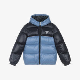 A black biker jacket for girls by Guess, made in faux leather. With a double-layered look, this cool jacket has a detachable, zip-on hood panel made in soft jersey. The jacket has handy side pockets and a silky lining for comfort. It is designed with edgy silver-tone hardware, a heart-shaped logo charm on the hem, and branded faux poppers on the lapels. Both the jacket and hood panel fasten easily with zips on the front.