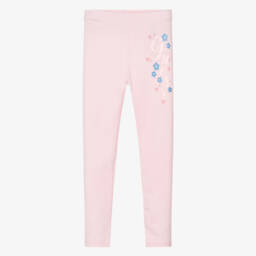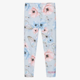 Mint green sporty leggings for girls by Guess, made in stretchy lycra. Ideal for exercise, they have a fun leopard print design, and a logo appliqué on one leg.
