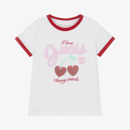 Cool pink tie-dye T-shirt for girls by Guess, made in soft cotton jersey for comfort. Forming part of the designer's Brandalised capsule, it has a cool artwork printed on the front from the iconic British street artist, Banksy. This item contains organic cotton fibres.