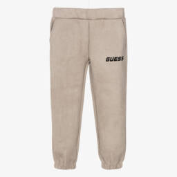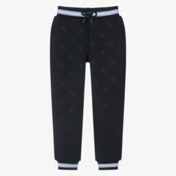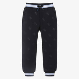 Navy blue joggers for junior boys by Guess, with an embroidered logo on one leg. Made in soft mid-weight cotton jersey, they have a cosy brushed feel inside. The waistband and ankles are comfortably elasticated, and there are concealed side seam pockets, with an additional pocket on the back.