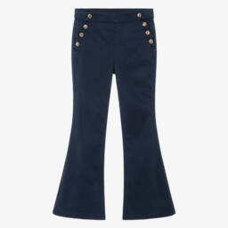 Fabulously feminine and floaty, these navy blue chiffon trousers for teen girls are by American designer Guess. Soft and lightweight, they have narrow pleats on the wide legs, and a stretchy, elasticated waistband with a short lining for comfort. The trousers have a shiny, golden metal, heart-shaped logo charm sewn on one side for instant brand appeal.