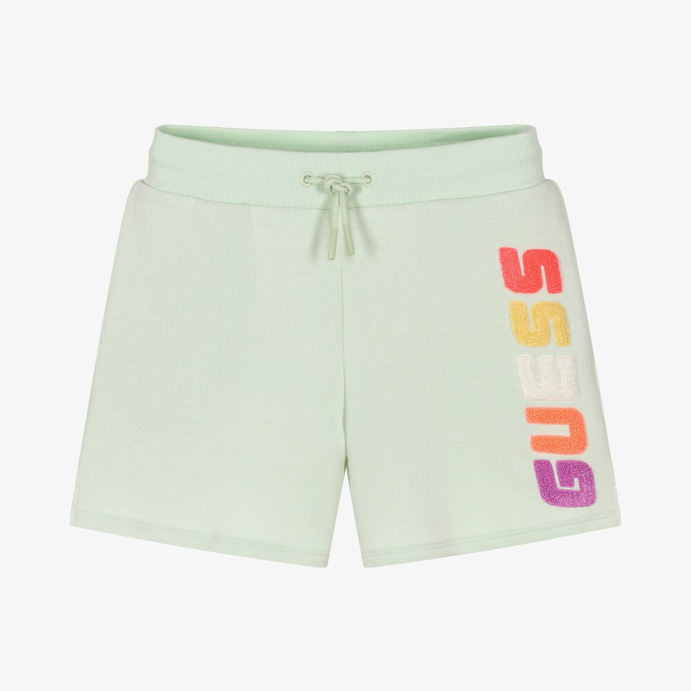 As seen in the main collection, these mint green shorts for teen girls are designed by American brand Guess. This easy-to-wear style makes for a stylish lounging piece, stamped with a colourful bouclé logo appliqué. They have concealed side pockets, a stretchy drawstring waist, and are made in soft cotton jersey for ultimate comfort.