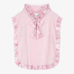 A hooded towel for girls by Hatley, made in a soft cotton-blend with a jersey underside. Poncho-style, it is great for keeping little ones warm after swimming or bath time. In shades of pink, white and orange, it has pom-pom trims and a two-tone heart embroidered on the chest.