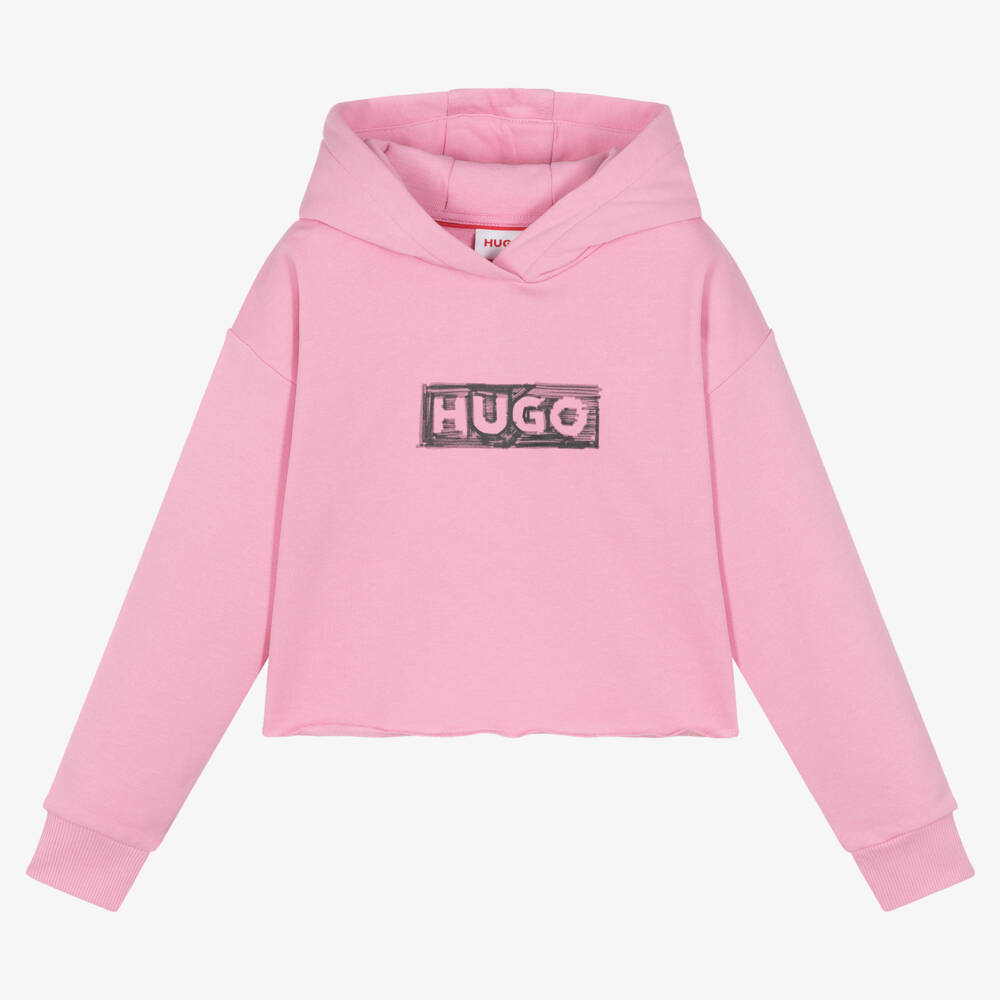 A cool pink hoodie for girls by HUGO, made from the softest cotton jersey. This boxy-fitting top has a black marker-effect logo printed on the front and back, with a distressed hem for a laid-back look.