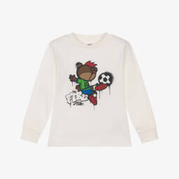 Fun blue cotton top for boys by Italian brand iDO Baby, with a yellow bouclé 'A' for awesome on the front and 'Yeah' printed on the back in white. With a cool, layered look, it has short blue sleeves, with long sleeves below in grey marl. Ideal for casual days, it is made in soft, comfortable jersey and has poppers on one shoulder to make dressing easy.