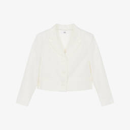 Grey blazer for older boys by iDO Junior, woven in a comfortable viscose blend. This double-breasted style has peak lapels and flap pockets, suitable for a formal look. It has decorative black buttons on the cuff and a double vent on the back for a more roomy feel.
