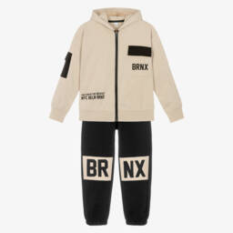 A navy blue tracksuit for boys from iDO Baby, made in soft cotton-blend jersey. Trimmed with red and white panels, this sporty tracksuit has varsity-style graphics for a collegiate feel. The top has a stand-up collar, front zip, and convenient pockets. Comfortable for laid-back days, the cuffed joggers have an elasticated, drawstring waist.