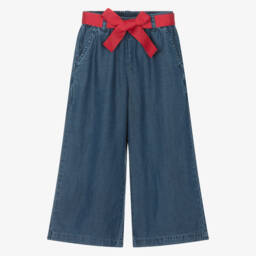 Стильные синие джинсы для девочек от iDO с пятью карманами, узкими зауженными штанинами и эффектом потертости. Мягкие и эластичные, они украшены контрастной белой строчкой и золотыми металлическими заклепками. Для веселого и блестящего акцента в комплекте идет съемный блестящий красный ремень с пряжкой в форме сердца золотого цвета.