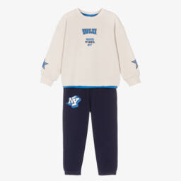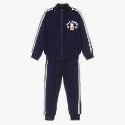 A vibrant fuchsia pink tracksuit for girls by iDO, made in mid-weight cotton jersey. In a comfortable relaxed fit, the zip-up top features reversible sequinned motifs on the front and useful pouch pockets. The wide-leg joggers have navy blue and white striping down the sides for a sporty look, with an elasticated drawstring waist for an ideal fit.