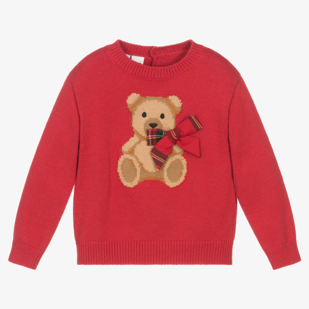 Красный свитер из хлопка и шерсти с медвежонком